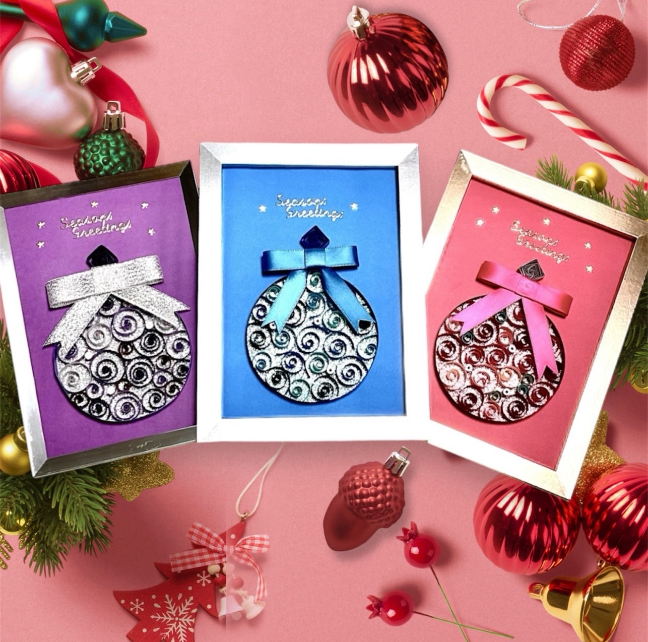紙のテープを専用の棒で巻取り渦を作ってクリスマスオーナメントのフレームをペーパーアートで作ります。