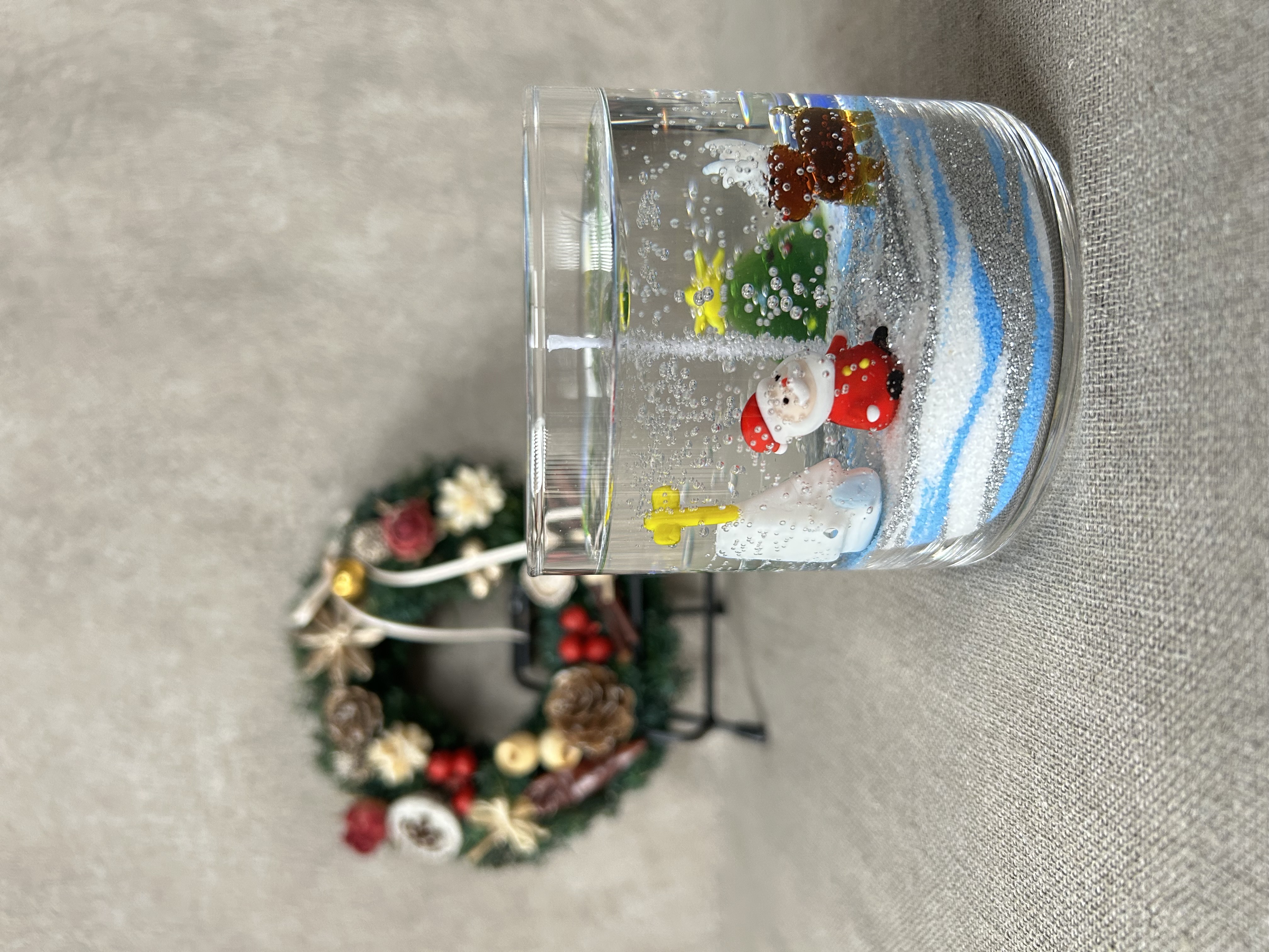 お好みの色の砂(カラーサンド)、4種類のクリスマスアイテムのガラス細工とビー玉で、クリスマスの景色を作ります。