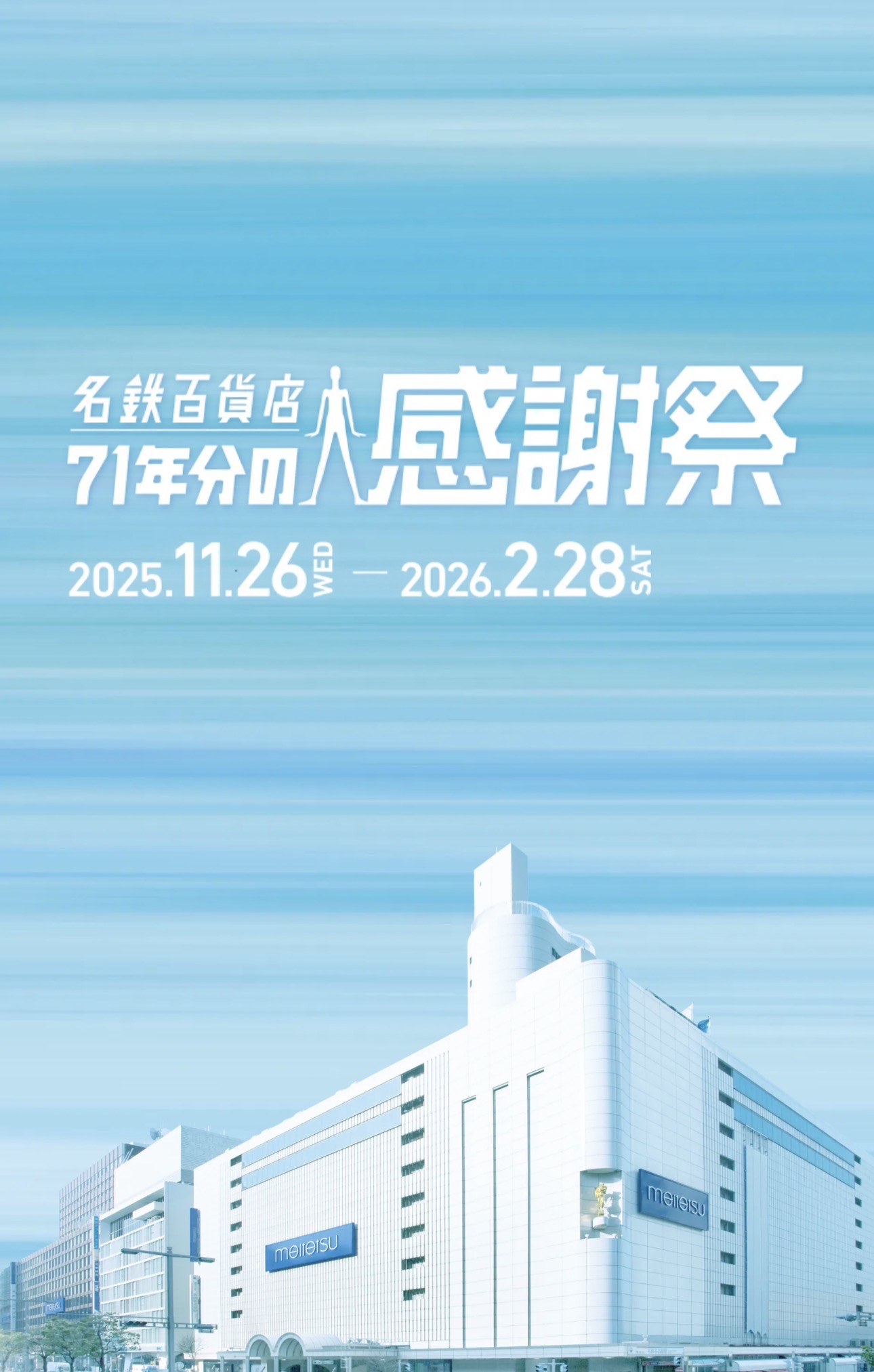 閉館にあたり、名鉄百貨店を⽀えてくださったすべての皆さまへの感謝の気持ちを込めて、「71年分の感謝祭」を開催いたします。- 開催期間
