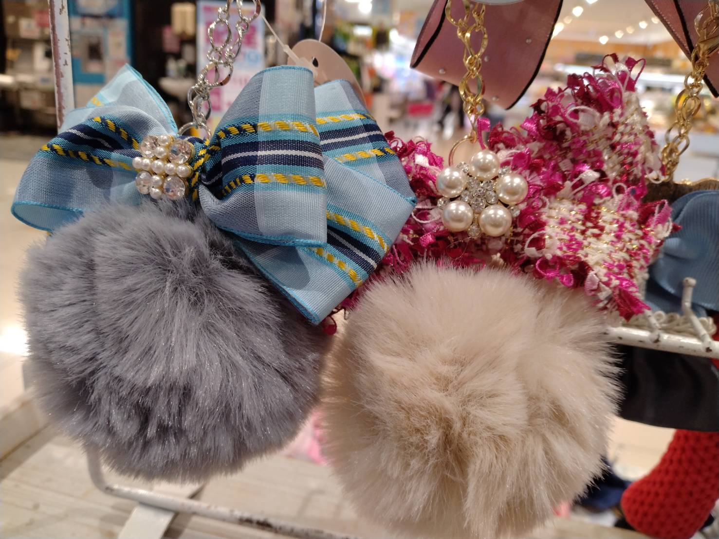 ベージュ、グレー、淡ピンクの中からお好みのフェイクファーとリボンを選んでオンリーワンのチャームを作ります。