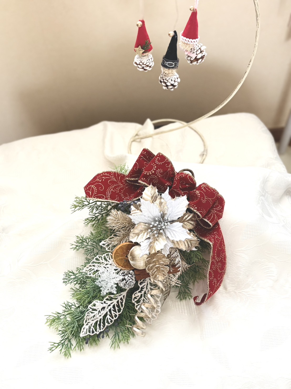 所要時間:およそ30分、参加費:1,980円(税込) スワッグも作る場合はサンタのオーナメントは1,320円(税込)となります。 -