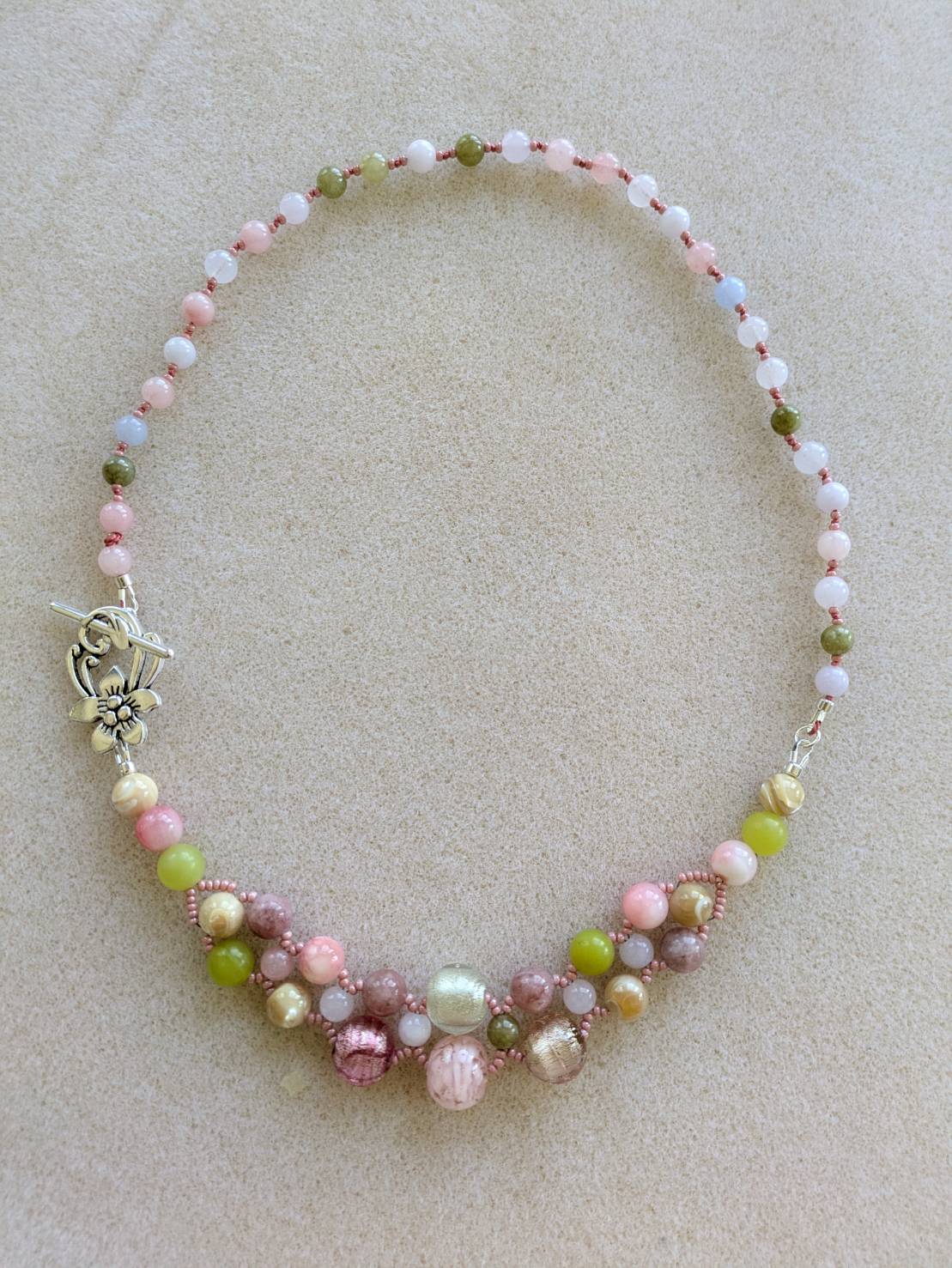 春。夏、秋、冬の四季をヴェネチアンビーズの色で表現をしたネックレス作り。