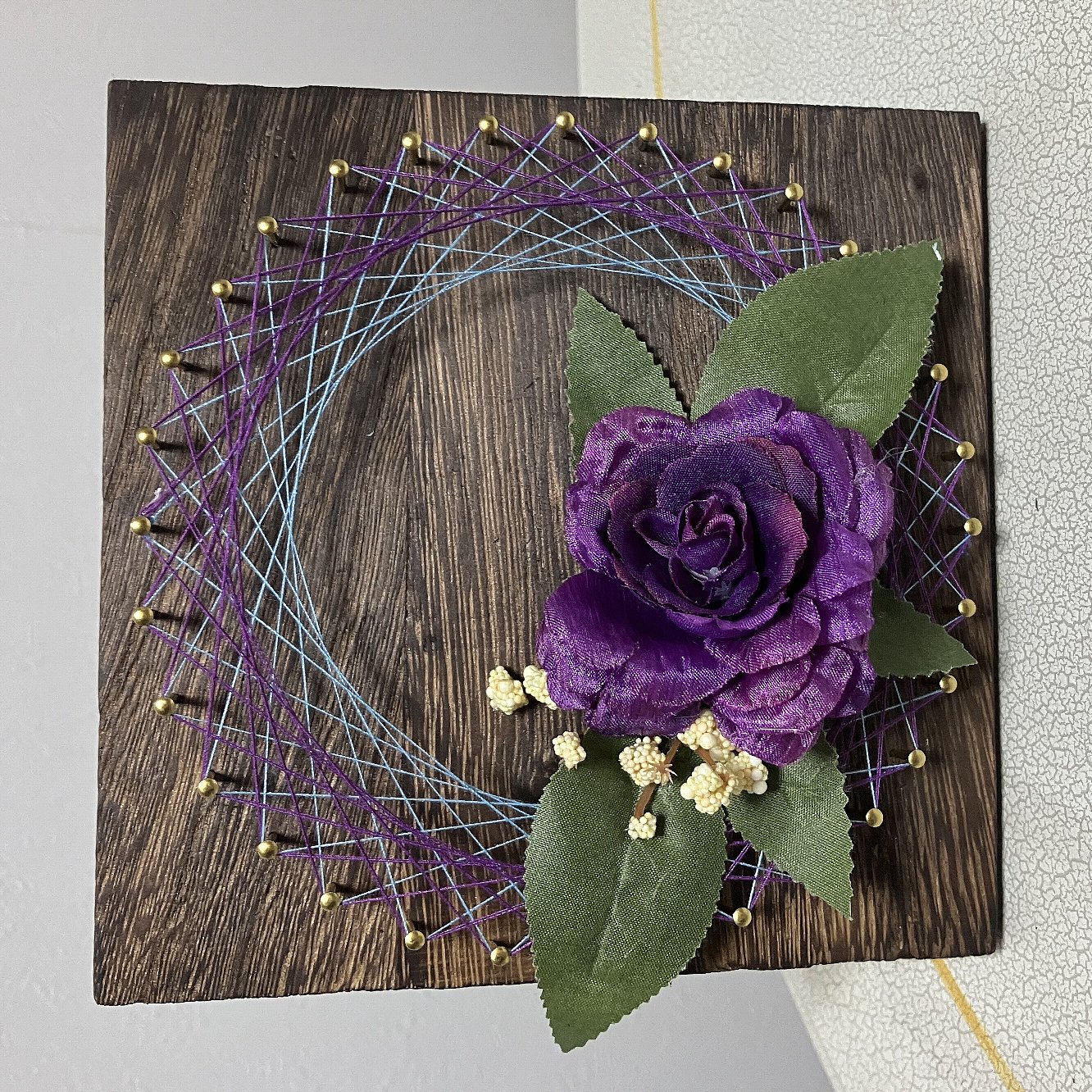 好きな色の糸を選んで糸をかけて曼荼羅を作り、お好みのアーティシャルフラワーでアレンジして仕上げます。