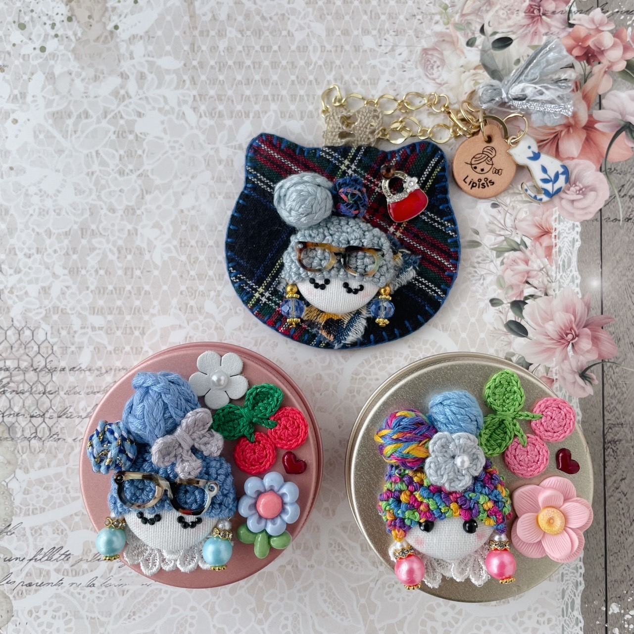 お好みの顔と髪の毛を選び、かわいいネームタグや小物入れを作ります。